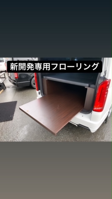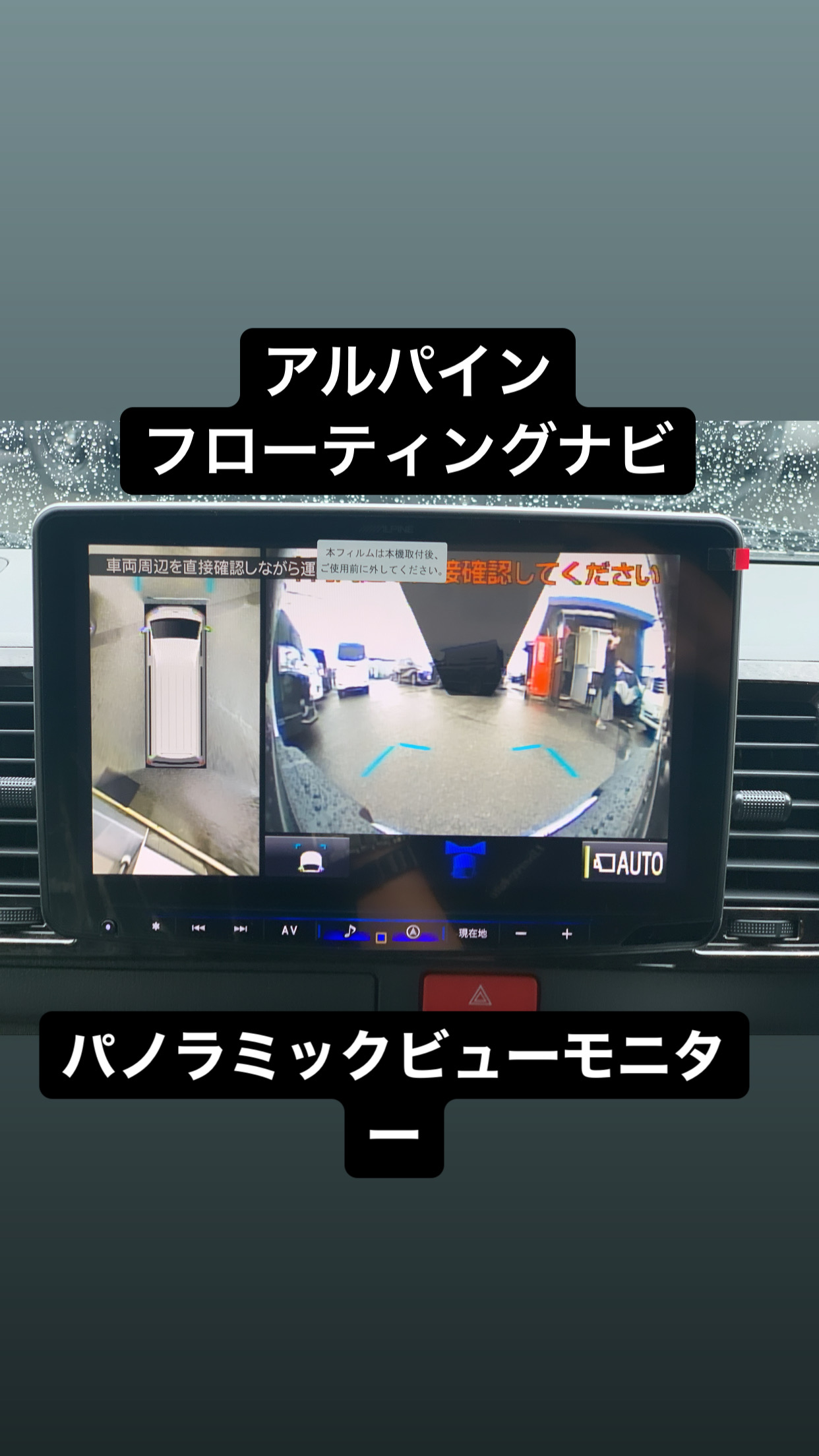 | 施工内容 | 新車6型ハイエースVスーパーGLダークプライムⅡにお客様よりのご希望でTRDフルエアロにアルパイン専用フローティングナビ、カーメイトのサイドバー、当店のmobleベッドキット&フローリング取り付けをさせて頂きました(^-^) |