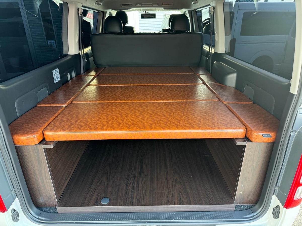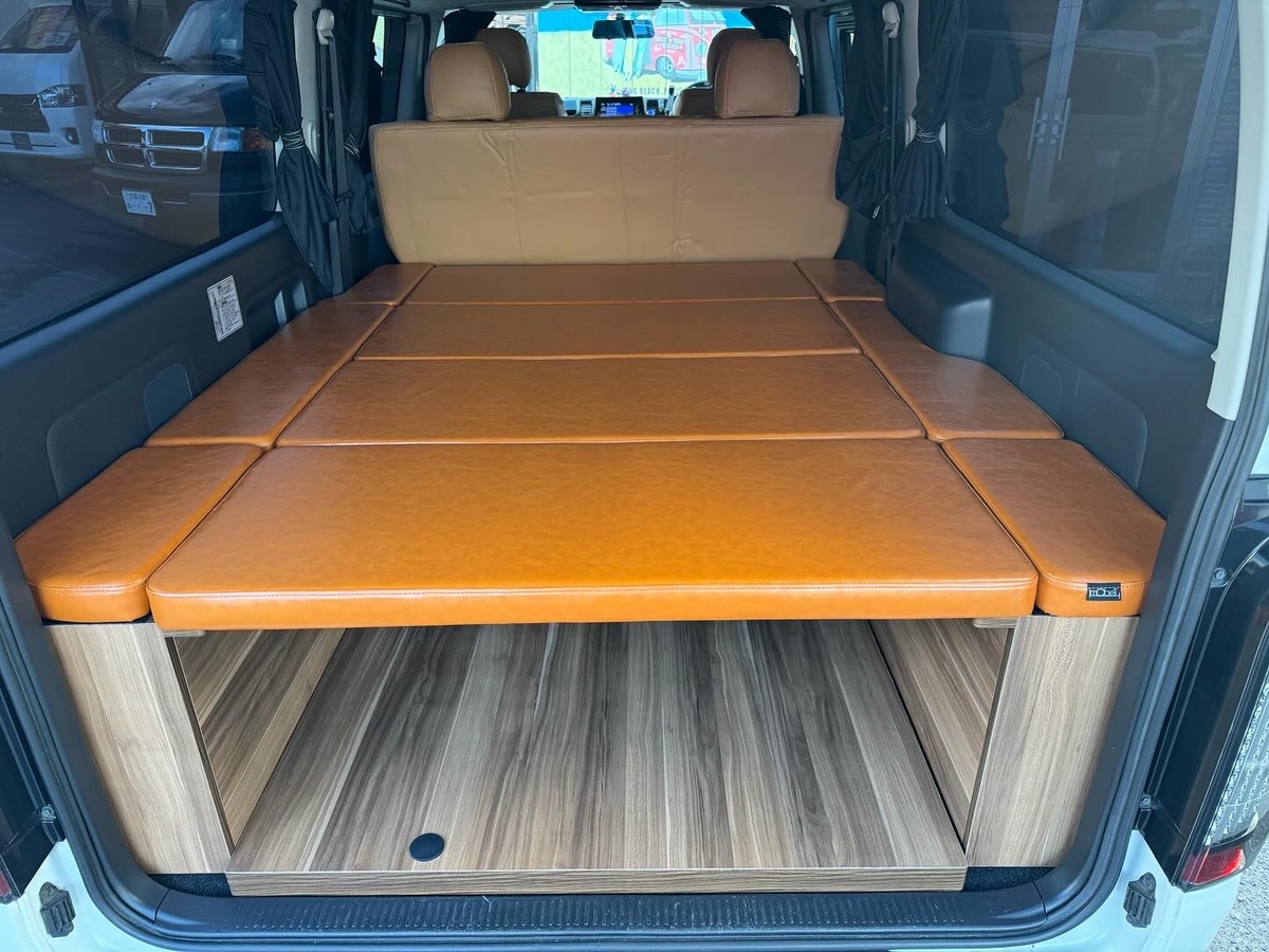最大3人まで横になれる快適なリラックス空間を実現。ベッドマットの下には大きな荷物も積み込み可能です。専用の床板もセットです!※写真はウォールナット